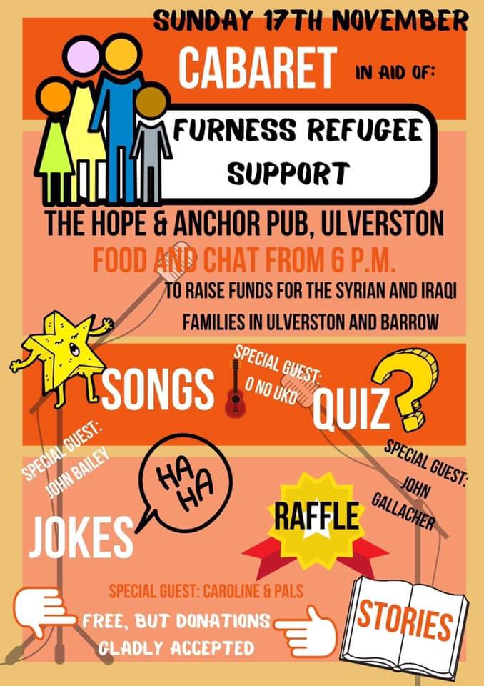 7pm, Saturday 12th March singer songwriter Chris Fox will be playing a fundraiser for Furness Refugee Support on his Facebook page.